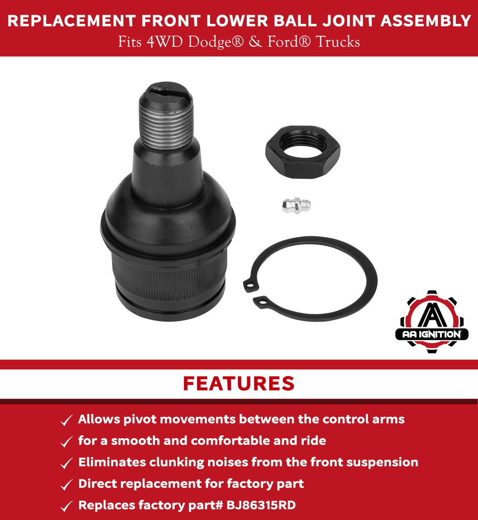 Replacement Front Lower Ball Joint Assembly - Compatible with Ford and Dodge 4WD Trucks - Excursion, F-250 HD, F-350 Super Duty, Ram 2500, 3500, 3500 RWD - Replaces K8607T, 1C3Z3050AB, 5C3Z3050AA